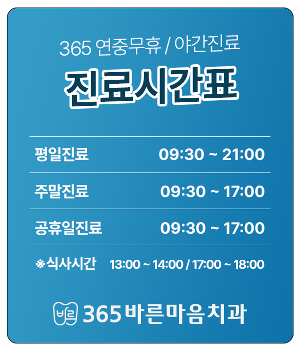 항상 바른마음으로 진료하는 365바른마음치과입니다.
