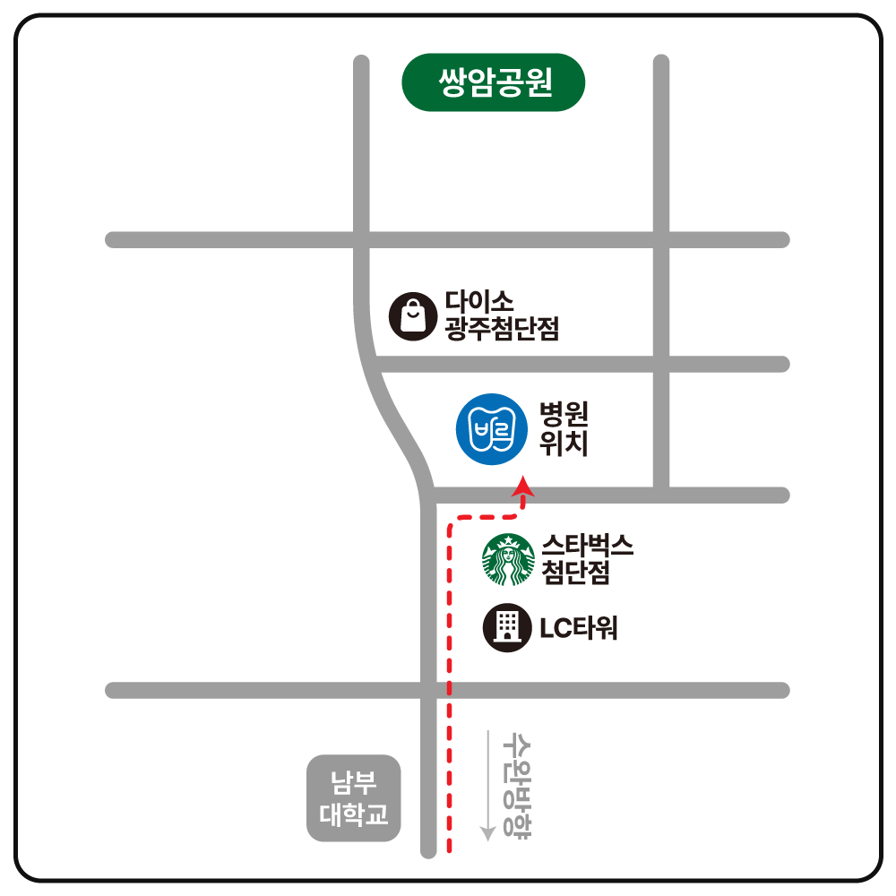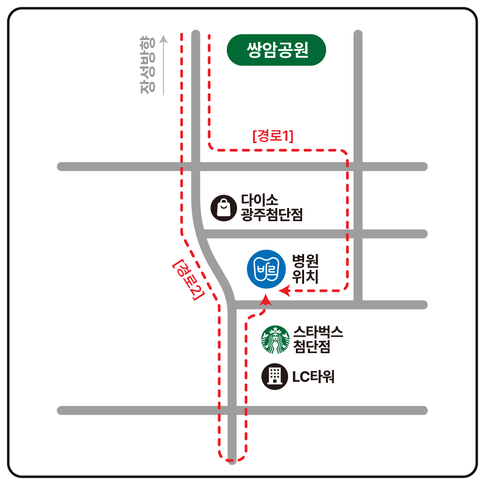 첨단 LC타워 → 쌍암공원 방향 도로 우측에 위치